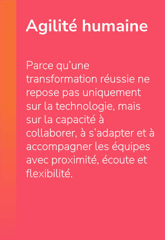 Elle prend en compte l’ensemble des initiatives, les processus, la culture et les réalités propres à chaque organisation. Plutôt que d’imposer des solutions, nous privilégions la collaboration, la clarté des objectifs et l’adaptation continue.